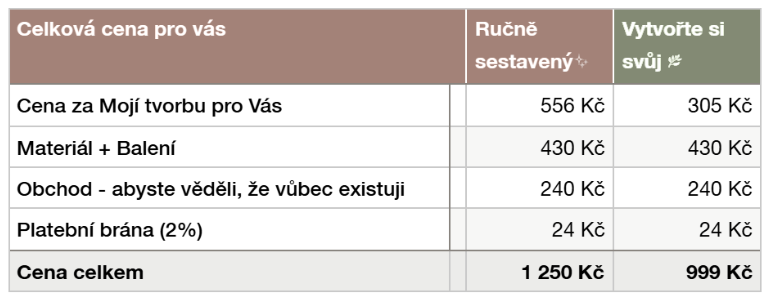 Pokud vás zajímá celý proces výroby a jak o ceně přemýšlím, detailně ho popisuji v samostatném článku.